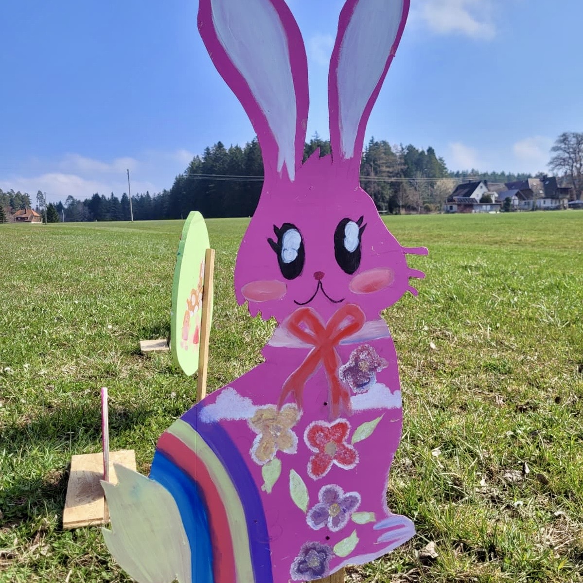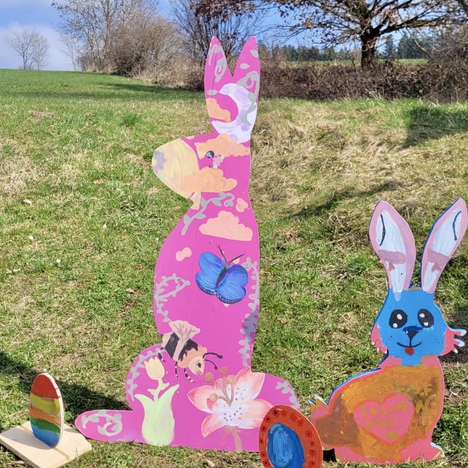 In diesem Frühling lädt ein Osterweg auf der Hutneck zu entspannten Spaziergängen ein. Auf Einladung von Meinrad Kopp vom Kristleshof haben unsere Teilnehmenden aus den Kursen von Beate Staiger, Rosaria Tosto und Nicole Haeger bunte Ostermotive gestaltet. Wir freuen uns über die bunten Hingucker in der Landschaft – und auch darüber, dass das Netzwerk unserer Freunde und Kooperationspartner stetig wächst.